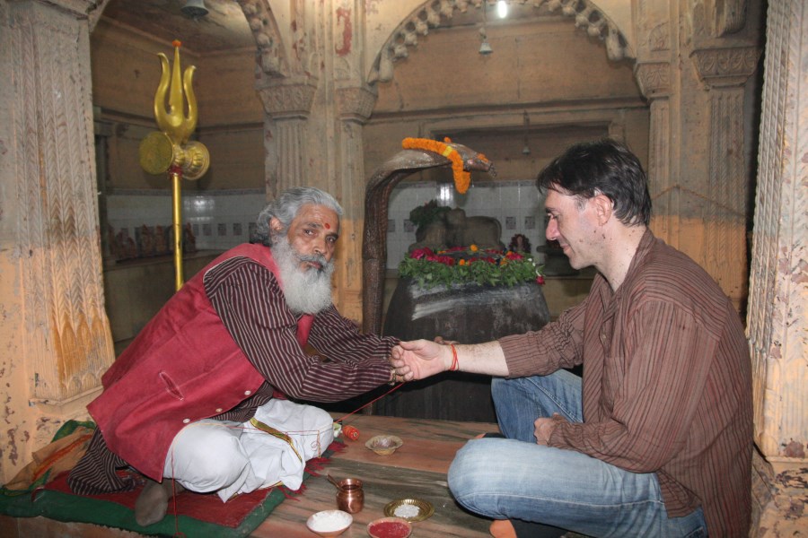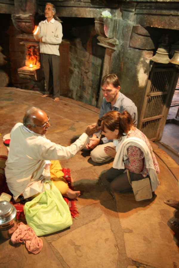 Un Brahman est là, à côté du linga, il nous met un point rouge sur le front et entoure un fin cordon rouge autour de nos poignets. J’aurai aimé rester là quelques heures, mais il faut y aller…
