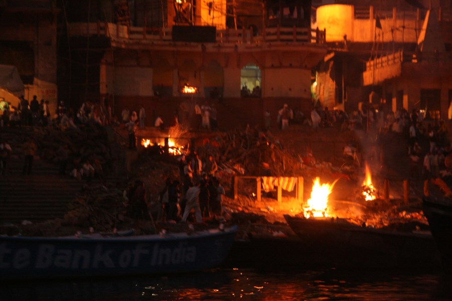 Le soir on reprend une barque et on va sur les gaths, les feux brûlent les corps, l’ambiance est mystique, la vie s’est jouée et tout est consumé ou va l'être... On accoste, on se rapproche des crémations, l’émotion est là, la vibration me submerge, le silence s’impose…