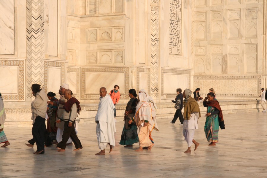 Découverte du Taj Mahal, sublime architecture, une pure émotion avec le soleil levant, une folie d’un homme, l’empereur Shah Jahan, pour ses trois femmes qui a ruiné un pays et l’a jeté en prison, mais la grâce est là !