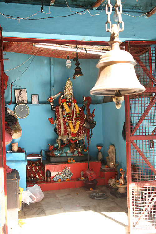 Petit temple avec statut façon « Barbie » en plus grand, étrange, l’iconographie indienne est très présente partout…